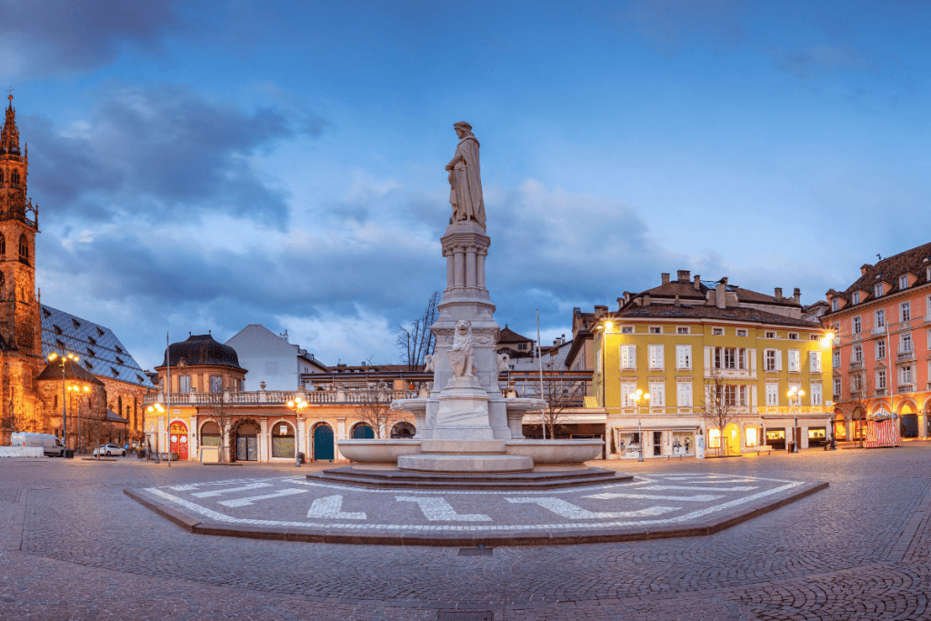 Bolzano je glavni grad Južnog Tirola i početna točka za istraživanje regije. Grad se nalazi u širokoj dolini okruženoj alpskim vrhovima. Njegovom povijesnom jezgrom se lako može kretati pješice, što ga čini savršenim za kratak posjet. Glavna ulica, Via dei Portici, obrubljena je kućama s arkadama, malim trgovinama i kafićima, što odražava srednjovjekovnu trgovačku prošlost grada. Svake se godine ovdje 10. kolovoza održava “Calici di Stelle” – događaj gdje vinarije organiziraju degustacije vina u prekrasnom okuženju, često pod zvjezdanim nebom.